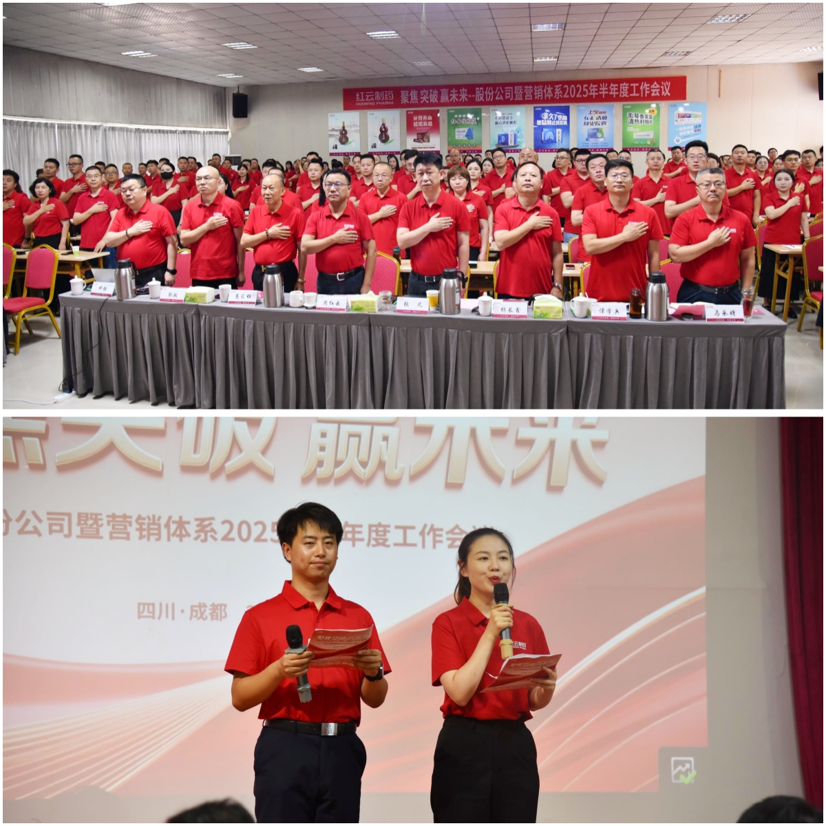 盛夏蓉城,生機盎然。7月12日,以“聚焦 突破 贏未來”為主題 的紅云制藥股份公司暨營銷體系2025年半年度工作會議圓滿召開。270多名來自各事業(yè)部、工廠及后臺部門的管理人員,通過線上線下方式出席會議,共同回顧上半年奮斗足跡,描繪下半年發(fā)展藍圖,為決勝全年目標凝聚磅礴力量,吹響奮進號角。